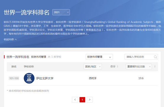 根據(jù)最新發(fā)布的“2021軟科世界一流學(xué)科排名”,西班牙薩拉戈薩大學(xué)多個學(xué)科位列世界100強(qiáng),旅游管理專業(yè)名列全球150強(qiáng)。