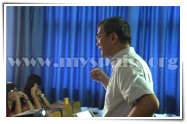 2012年7月23日下午2:30上海外國語大學逸夫會堂內(nèi)傳來陣陣掌聲和笑聲,由上海外國語大學留學中心和上海外國語大學西方語系共同主辦的第42期出國西班牙語培訓班開學典禮正式開始。